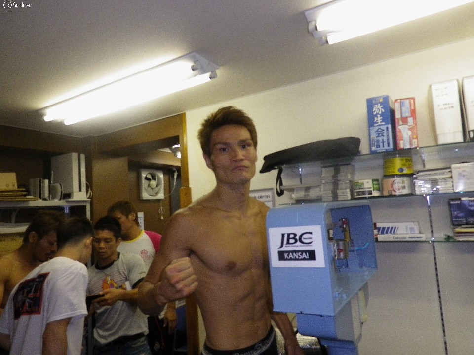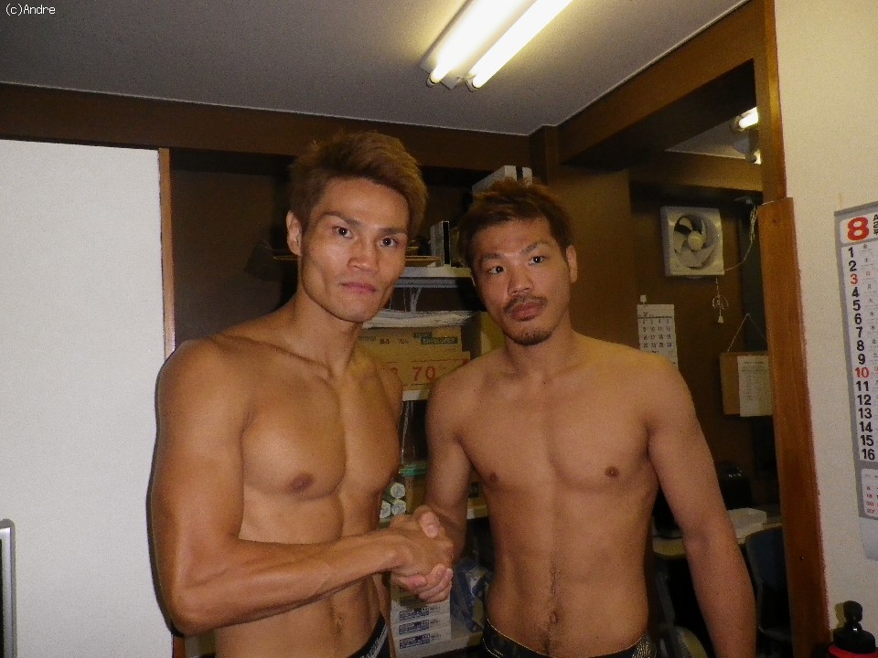 旧知の仲ということもあり和気あいあいとした計量を終えた両者は固い握手を交わしお互いの検討を誓った。