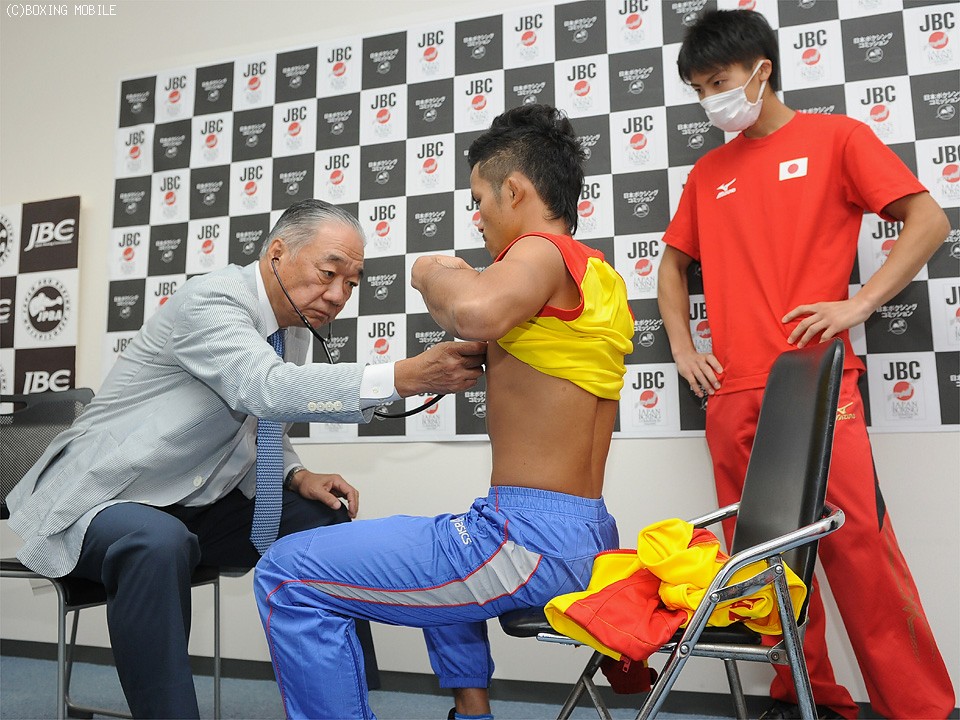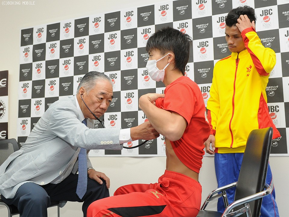 5日に代々木第二体育館でWBC世界ライトフライ級タイトルマッチに出場する、王者・井上尚弥(大橋)と挑戦者のサマートレック・ゴーキャットジム(タイ)が、JBC事務局で予備検診を行なった。