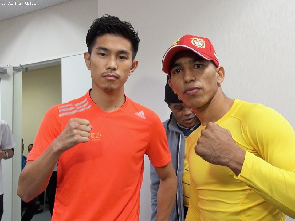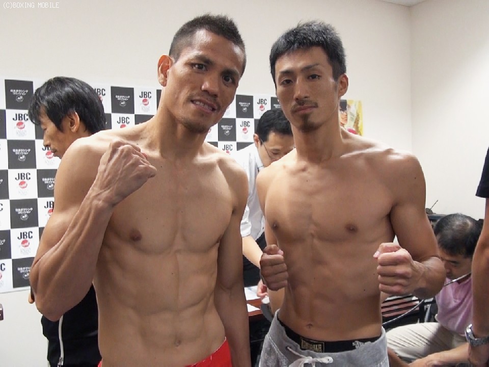 メインのフライ級10回戦に登場する、井岡一翔、パブロ・カリージョは共にフライ級リミットの50.8kgで計量をパス。