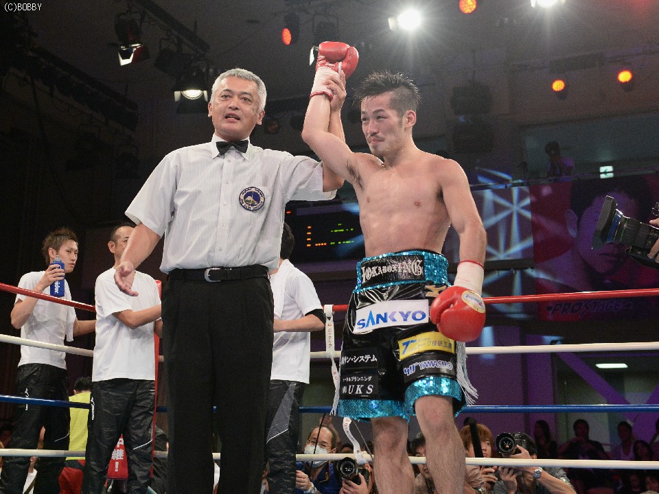 前回、減量苦による調整失敗でまさかの3ラウンドKO負けを喫した宮崎は・宮崎は、今回は増量しフライ級リミットに近い、50.0kg契約でインドネシア国ライトフライ級4位イカル・トビダ(インドネシア)と対戦。初回、身長で上回るトビダを中心に立たせ、ジャブを突きながらリングを大きく使った宮崎は、多少の固さは見えたもののトビダの力量を図り終えると左ボディから崩しにかかった。トビタも宮崎のジャブをガードしてはワンツー、ボディで応戦したが、3ラウンド終盤にはスピードを上げた宮崎の左フックが顔面を捉えるなど、宮崎のペースで試合は進んだ。
