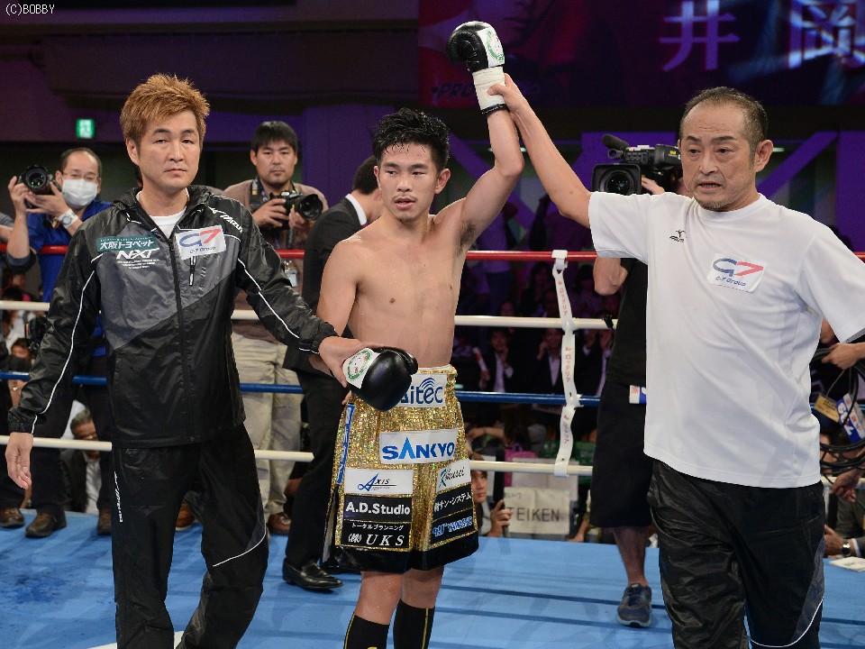 関係者、ファンの祝福を受けながら控え室に戻った井岡は「しっかりと足を使い、パンチをもらわずに勝つことが今回のテーマだった。倒せなかったのは悔しいが、相手もこの試合に懸けているのが戦っていて分かった。満足はしていないが、その中で勝てたことが一番の収穫」とし、世界については「一日でも早く世界王座に返り咲きたい。そのためにやるべきことは山ほどある」と新たな課題に取り組む姿勢を見せた。