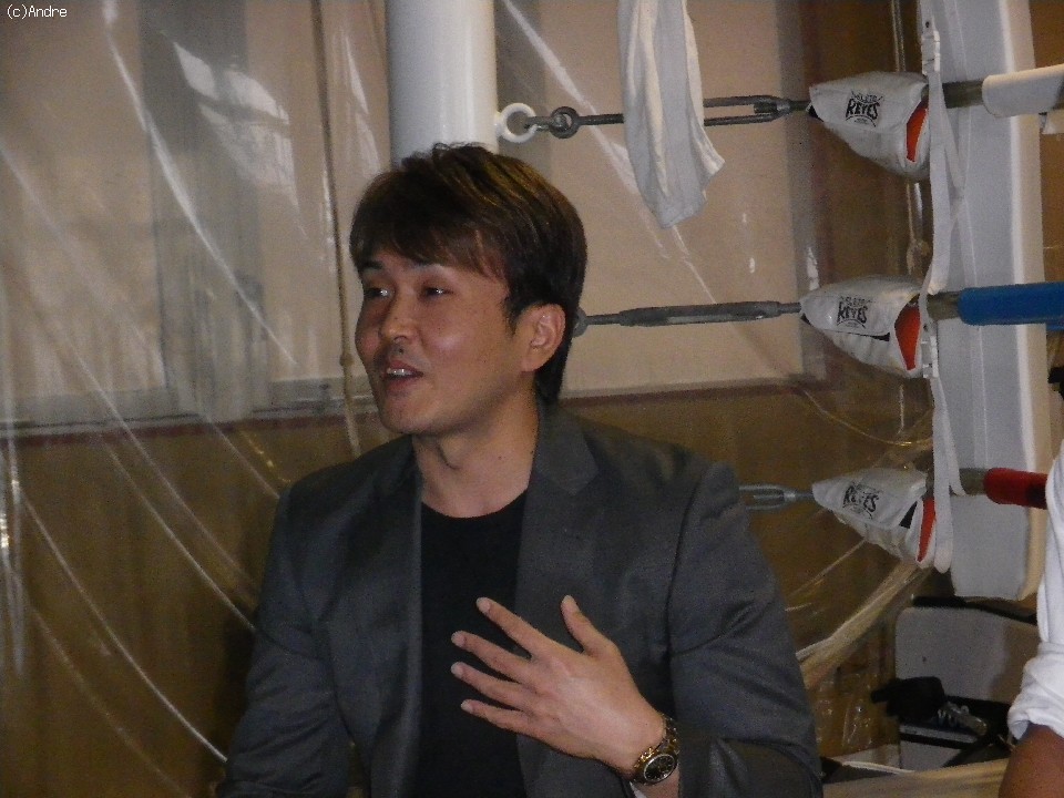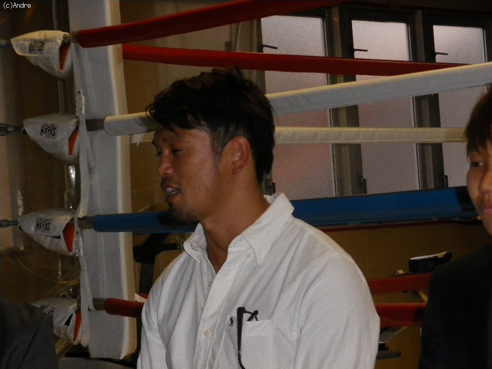 この日、大型新人の獲得もあわせて発表した本石会長は「4年ほど前にコンビニの前で声を掛けたのがきっかけで知り合った元興国高校ボクシング部主将で先日、龍谷大学を中退しプロ宣言した田中一樹選手を獲得しました。9月28日のプロテストでB級を受験し、12月にデビュー戦を予定しています」と大型新人に期待をよせた。