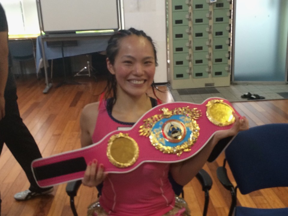 控え室に戻った池原は、ピンクのベルトを手にし「獲れて本当に良かったです。今までもマスク被って入場したりして注目を浴びたかったんですけど、全然ダメで…。やっぱりチャンピオンにならなきゃと思っていました」と喜びを爆発。試合内容については「アバニエル選手がタフで、倒しに行って力んでしまいました。反省ですね。これからも練習頑張りますので応援よろしくお願いします」とし、まだまだ残る課題に取り組む姿勢を見せた。