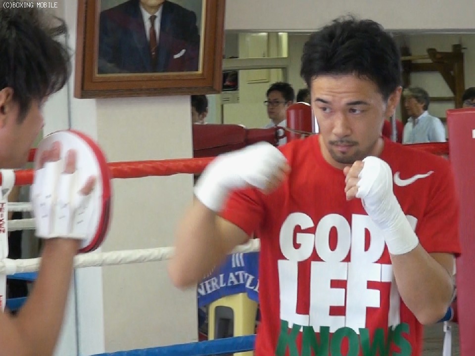 公開練習前に行われた記者会見に、山中は大和心トレーナーとともにナイキが制作した「GOD’S LEFT KNOWS」とプリントされた赤いTシャツを着て現れた。V6王者は「モチベーションが上がりますね」と笑みを浮かべるなど、すっかり気に入った様子だ。「減量も含めて調整は順調」という言葉に偽りはないのだろう。特に頬がこけた様子もなく、必要以上にナーバスになっている気配もみられない。