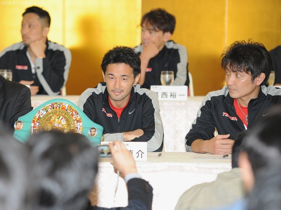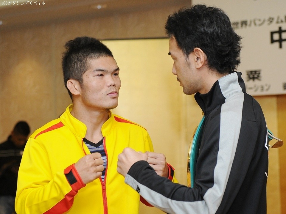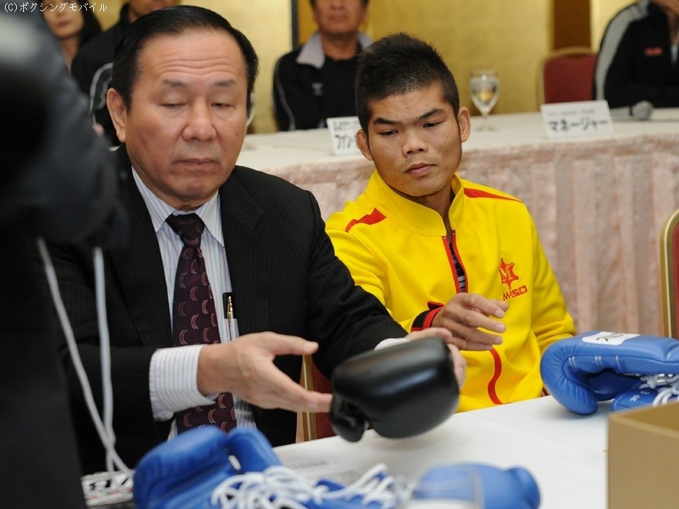 立会人のフランク・クイル氏の挨拶が終わり、両陣営がグローブ・チェックに入ると、それを待っていたかのように挑戦者側がクレームをつけてきた。「公平を期するために山中と同じ黒色がいい」とスチャート・マネージャーが要求したのだ。しかし、色違いのグローブを着用することが契約書に明記してあることを知ると、スリヤン陣営は青色グローブ着用に合意、悶着は5分程度で片がついた。会見に移り、この件に関する感想を求められた山中は「早く終わってくれないかなと思っていた」と苦笑いを浮かべた。「最高のトレーニングを積んできた」と話す山中は、バンタム級リミットまで残り500グラム程度と減量も順調の様子だ。5連続KO防衛中とあって「神の左」が警戒されることは間違いないが「右をうまくつかいたい。でも、いまさら隠す必要もないでしょう。記録(具志堅用高氏に並ぶ6連続KO防衛)は意識しないが、KOは意識している。いい内容で勝ち『バンタム級では山中がナンバー1』という試合をする」と断言した。