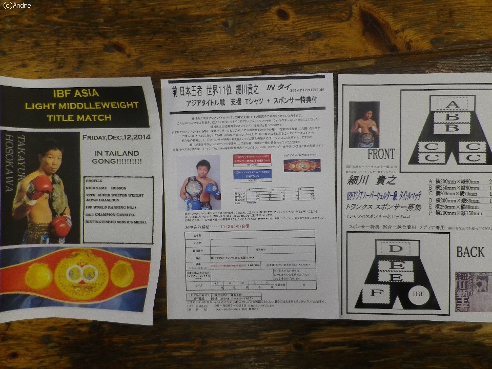 六島ジム枝川孝会長は「相手はインドネシアのモーセス・セラン(36)で戦績は42戦24勝18敗。日本タイトルも獲ったし、どうせやるなら細川には世界を目指してもらう。IBFでは世界の11位やし、今回のタイトルを獲って世界戦ができるように来年のIBFの総会にも行ってアピールするつもり」と世界プランを明かした。