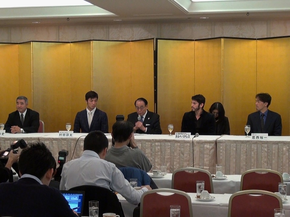 11日、都内ホテルで行われた会見で、WBCミドル級8位・村田諒太(28=帝拳)のミドル級ノンタイトル戦、WBC世界ライト級1位・ホルヘ・リナレス(29=帝拳)のWBC世界ライト級王座決定戦が、12月30日に東京体育館で開催される「2014 SUPER BOXEO」で行うことが発表された。
