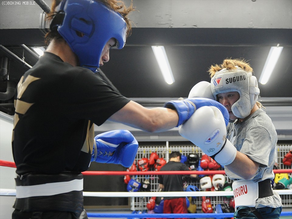 田口の最長ラウンド数は、12年3月の日本同級王座挑戦と、昨年4月の同王座決定戦、そして同年8月、初防衛戦で井上尚哉を迎えての10ラウンド。試合前に未知の12ラウンドを経験すべく、村中を含む3選手と4ラウンド交代でスパーリングを決行。疲れが溜まっていた時期だけに後半のキレは今ひとつだったが、まずは12ラウンドを動き続けたことで壁をひとつクリアした。試合では序盤からのペース配分が重要なカギとなりそうだ。