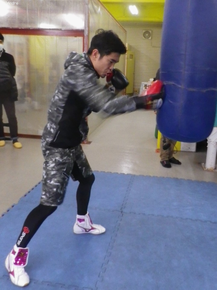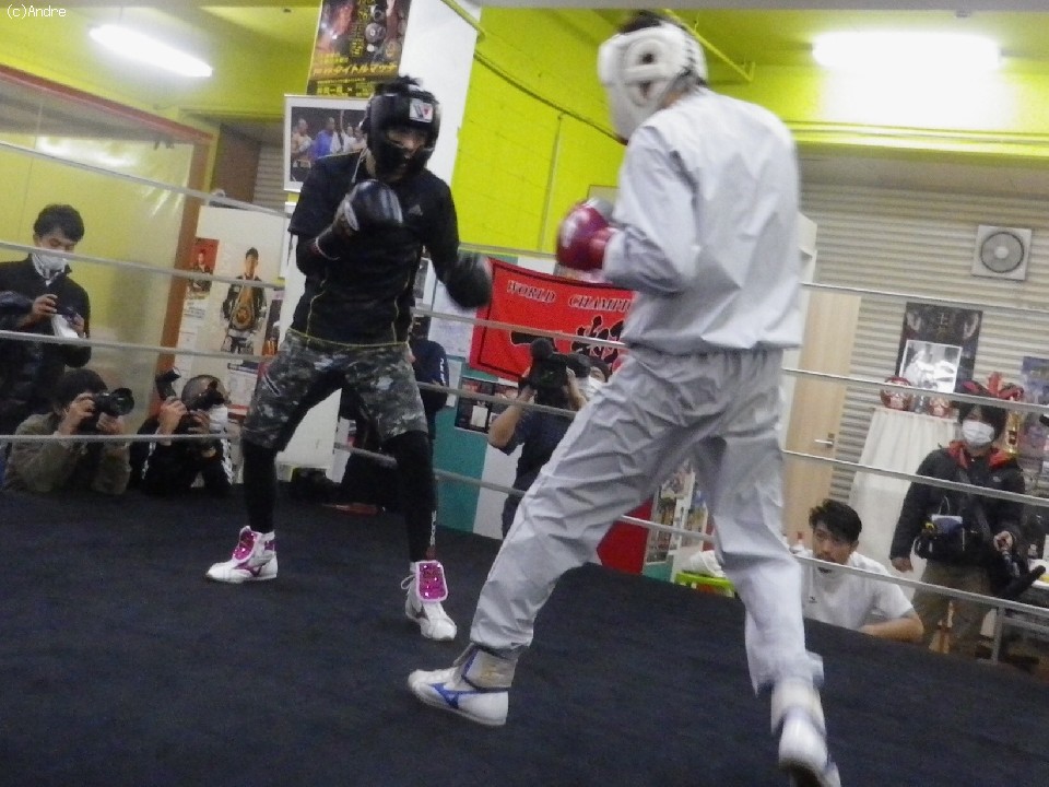 試合を6日後に控えているため、この日は、日本スーパーフライ級王者の石田匠(23)を相手に3Rのスパー、その後6Rのバック打ちと軽めの調整で切り上げた。