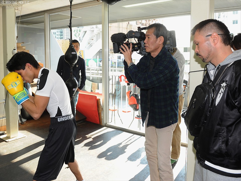 会見後の練習は軽めのものとなり、パワーよりもスピードを意識したワンツー、フック、アッパーの確認作業に終始したが、手首を内側にひねりながら打ち込む左フックが独特だった。