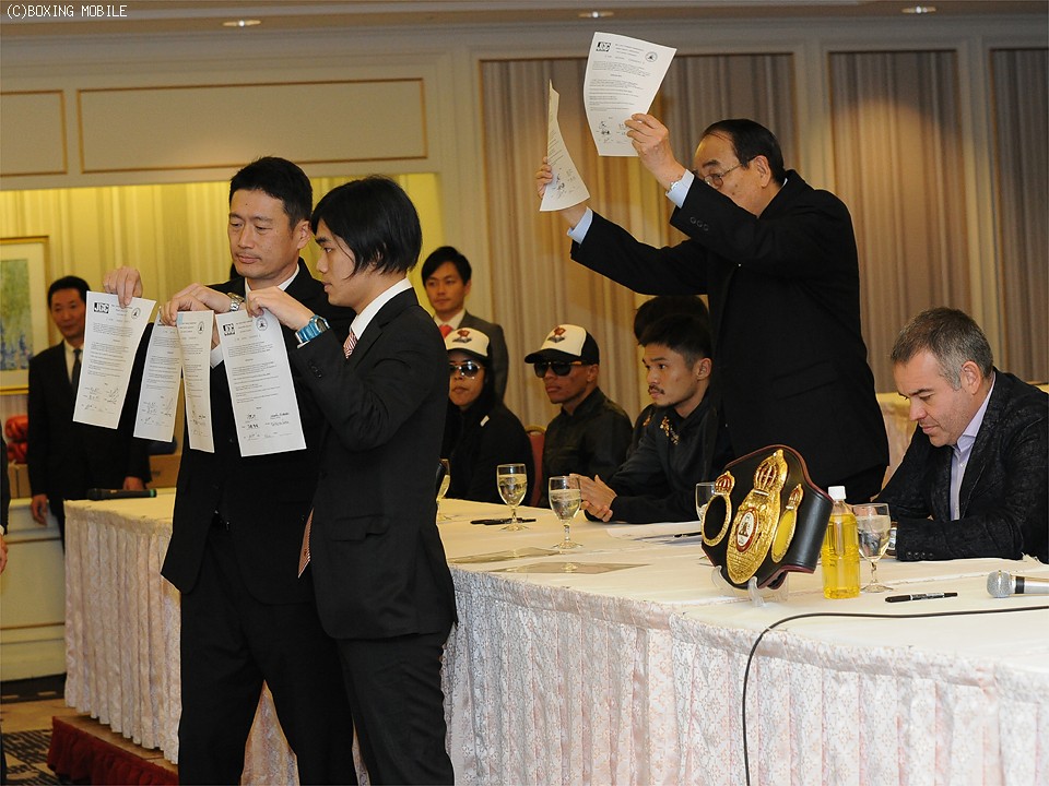ワタナベジム現役3人目の世界王者を目指す!大晦日、東京・大田区総合体育館開催のトリプル世界戦で先陣を切り、WBA世界ライトフライ級タイトルマッチに挑むWBA世界同級9位の田口良一(28=ワタナベ)が、王者アルベルト・ロセル(36=ペルー)とともに29日に都内のホテルで調印式に臨んだ。