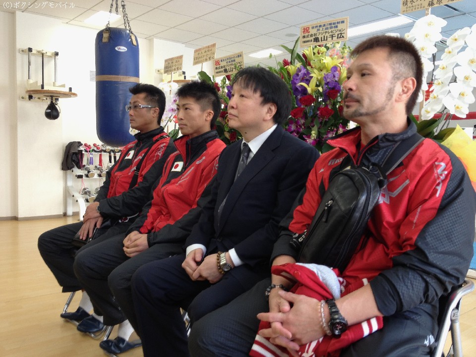 「昨日、尚弥がいい試合をしてくれたので、やっとエディ・タウゼント賞を頂けることも喜べます」と話した父、真吾トレーナー。「素人みたいなことをいうと、パンチが見えなかった。ダウンではなくスリップかと思った」と4度訪れたダウンシーンを振り返った大橋秀行会長。昨夜の尚弥を絶賛した。
