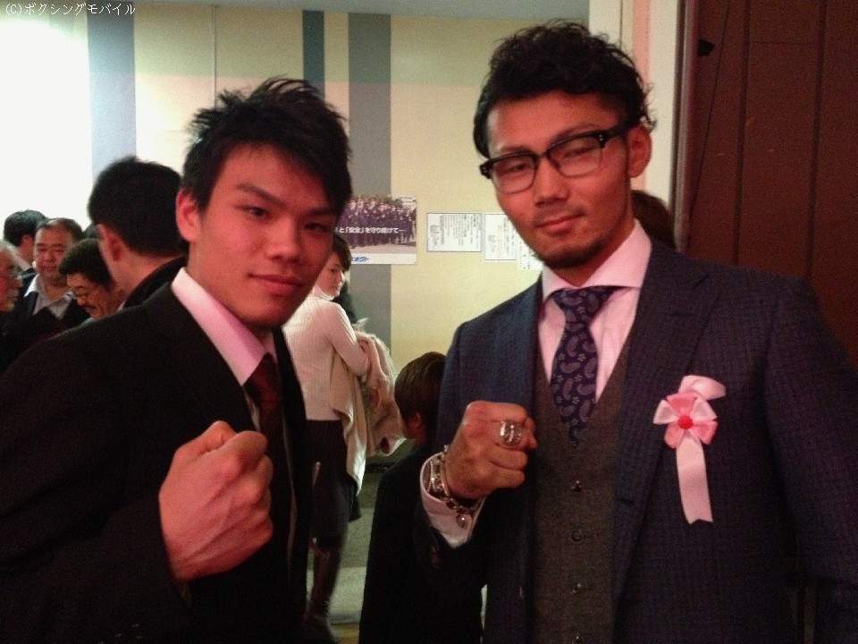 京都から式典に駆けつけたウォズジムの大森将平と徳永幸大の二人と会場内で立ち話。熱い気持ちを語ってくれた。