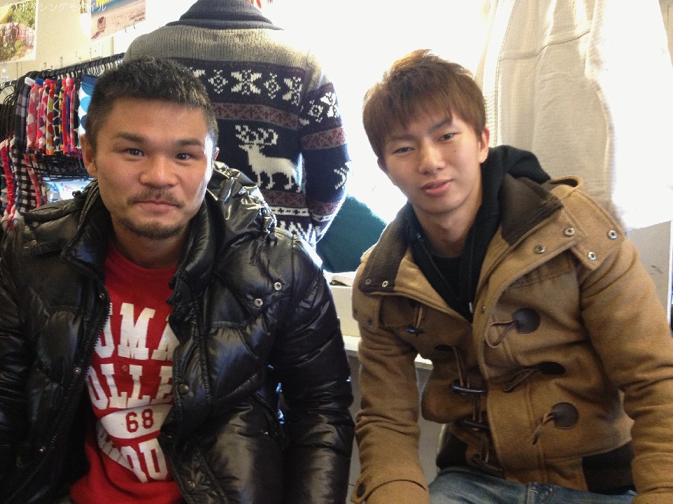 ワタナベジムに所属するWBA世界スーパーフライ級王者の河野公平とライトフライ級世界王者の田口良一が揃って19日、原宿で開催中の「EVERLAST」の展示会を訪れた。
