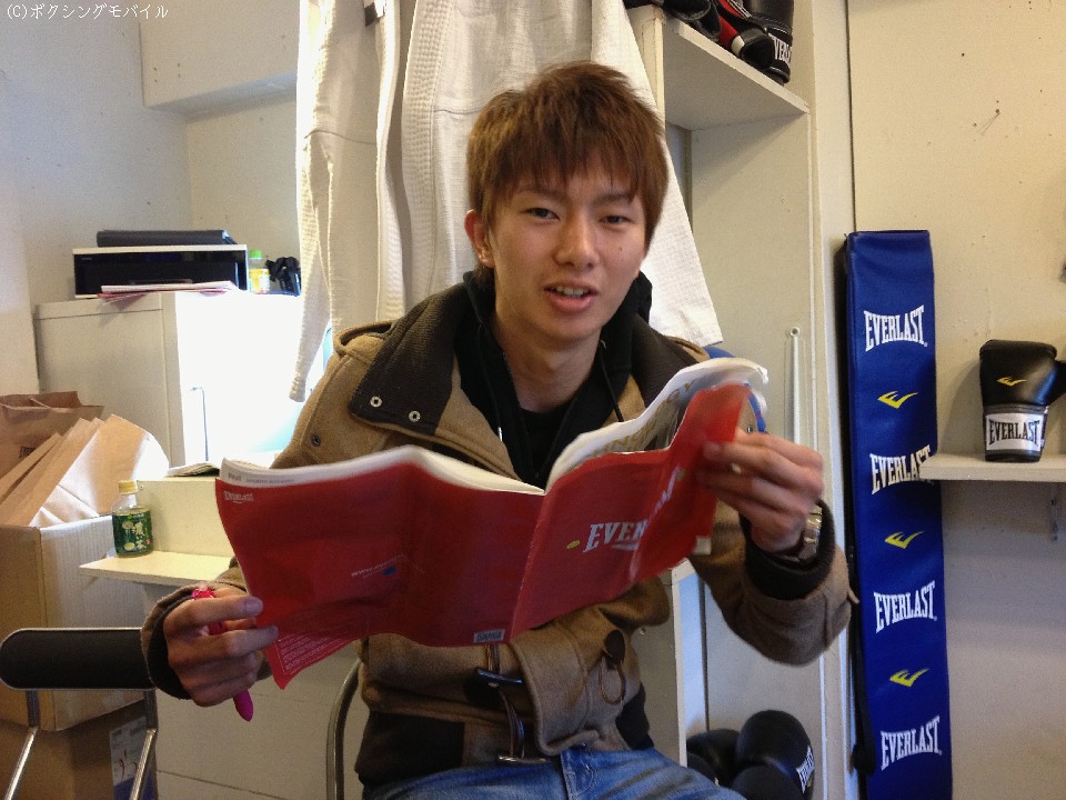 この日の行動を共にした河野に続き、ワタナベジム三人目の世界チャンピオン田口は「センスはないけどファッションは好きです」と話すと「EVERLAST」のカタログを熱心にチェックした。初防衛戦の日程などは定かではないとしながらも、練習を再開している田口だが、5月に照準を合わせてスパーリングを近々スタートする。