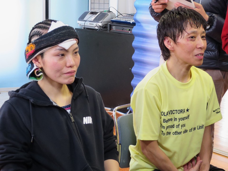 控え室に戻った両王者はドクターチェックを済ませ、揃って会見に臨んだ。