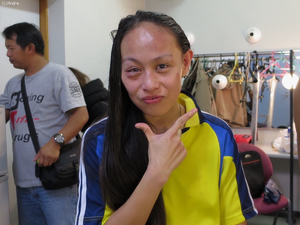 続いて、消化不良で試合が終わってしまったパガデュアンは「池原チャンピオンはパンチが強かった。グットファイター。アクシデントは仕方ない。また日本で世界戦がしたいので頑張ります」と語って控え室を後にした。