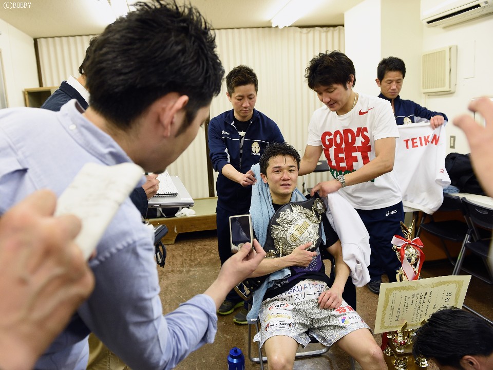 一方、大応援団の祝福から抜け出し控え室に戻った木村。「強いチャンピオンを見せたかったので、結果が出せて良かった」と会心の勝利を改めて喜び、細かく言ったらキリがないと前置きしつつも「今日は右がよく決まり、自分でチャンスを作ることができた。これまでやりづらいと感じ、気持ちの中で避けていた山口選手にストップ勝ちすることができて自信になった」と誇らしげな顔も見せ、自身に合格点を付けた。