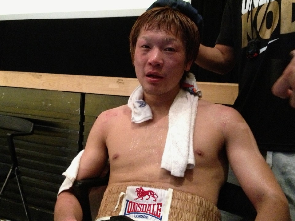 笑顔で始めた試合後会見で前原は「さすがはチャンピオンですね。今までで一番強い相手でした。アゴが痛いです」。佐々木左之介の右ストレートを体感し、自信が深まった。「まだチャンピオンになれる段階ではないですけど、佐々木選手と同じワタナベジムの柴田チャンピオンを引きずり下ろしたいです」と早くも前原節が口をついた。成長を見せた前原の今後に注目したい。