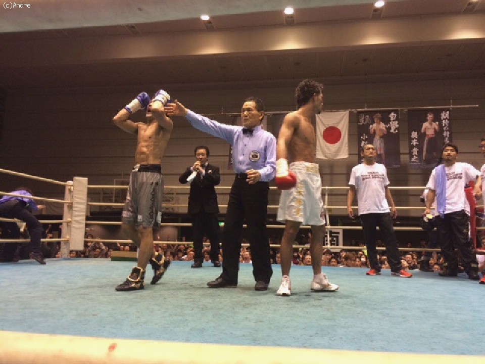 大勢の応援団と記念撮影に応じた川口は控え室に戻ると「僕はスロースターターなので、前半はああいう展開になるのは予想していました。後半に入って山本選手の動きが鈍くなるのも想定していたのでイメージ通りの試合運びです」と快心の笑みを見せると「プロになって、10年かかりました。本当に嬉しいです。本石会長を含めジム全体が良い環境を作ってくれたおかげです。感謝しています」と喜びを噛み締めた。