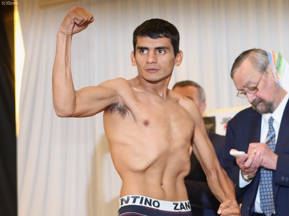 続いて計量に臨んだチャレンジャーのサンティリャンは53.2kgの300gアンダーで余裕のパス。「計量がうまくいって本当に嬉しい。アルゼンチンにいる時から計画的にやってきた結果が出た。あとはスパゲッティでも食べて明日に備える。良い試合になるだろう」と笑顔を絶やすことなく会場をあとにした。