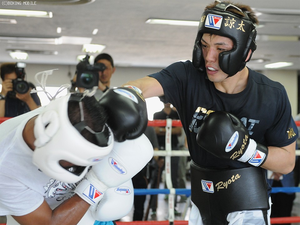 今回は海外の長身選手をスパーリングパートナーとして招き、田中繊大トレーナー曰く「量より質を重視した」という。公開したスパーでも、スピードと手数のあるパートナーに対し、プレッシャーをかけては左ボディ、右ストレートを好打させていた。