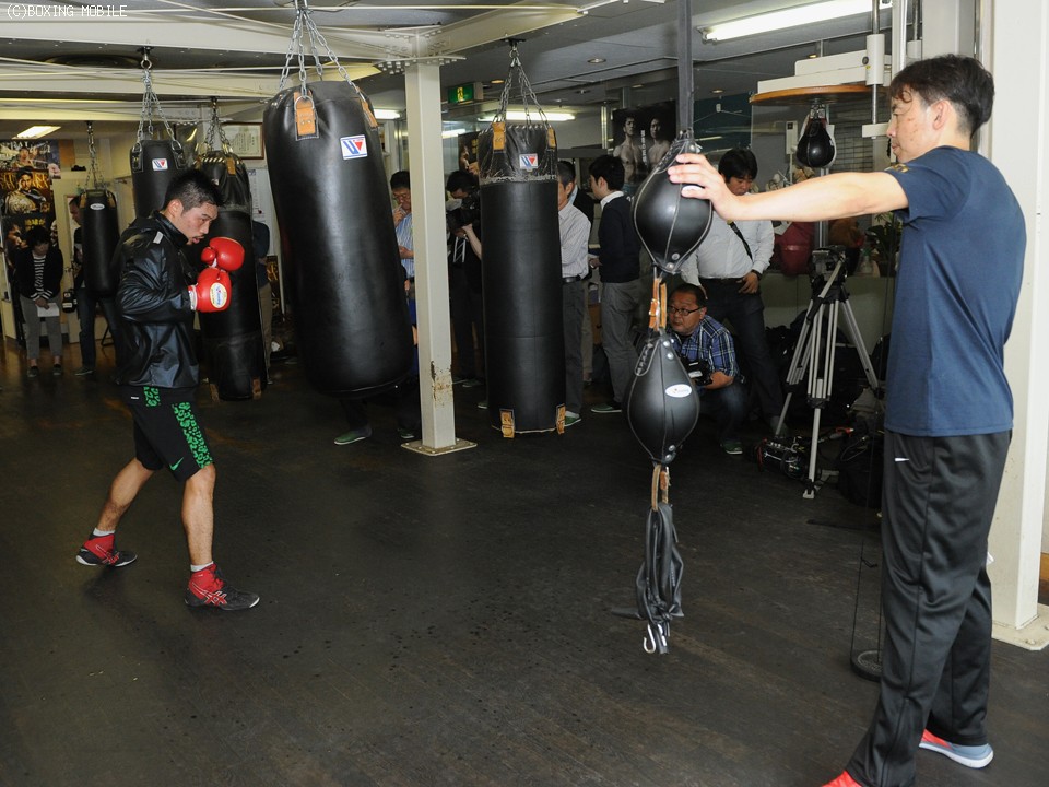 元IBF世界フェザー級王者で現WBC世界スーパーフェザー級7位のビリー・ディブ(29=豪)を迎え、5月1日(金)の大田区総合体育館で4度目の防衛戦に臨むWBC世界同級王者の三浦隆司(30=帝拳)が1週間前の24日、都内の所属ジムで公開練習を開いた。