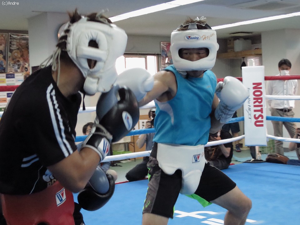 練習はフィリピンから招聘した2人のパートナーを相手に8Rの予定でスパーリングを披露。鋭いジャブを連打すると左ストレートを上下に決め、順調な仕上がりをみせた。