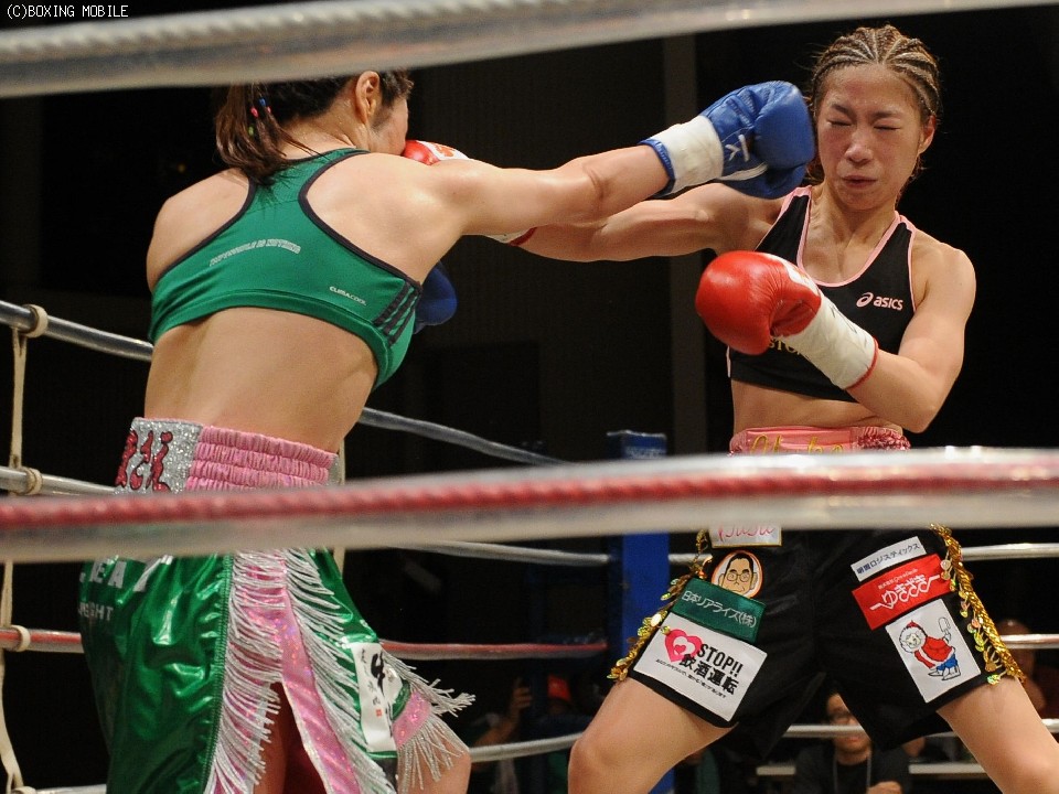 WBC女子世界ミニフライ級タイトルマッチ10回戦、王者・黒木優子(24=YuKO)対同級10位・秋田屋まさえ(37=ワイルドビート)の一戦が9日、大阪・豊中アクア文化ホールで行われた。プライベートでも交友のある美女二人だが、試合では一切の情を見せず、序盤から女の意地をぶつけ合った。