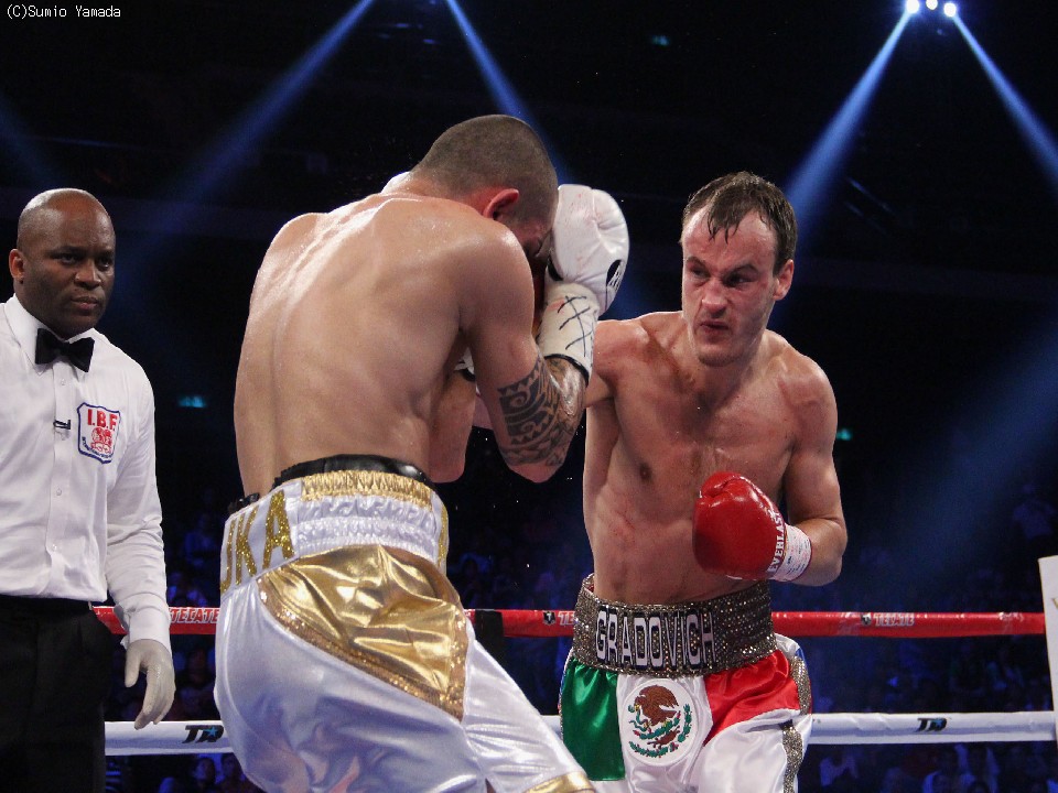 グラドビッチは13年3月、ビリー・ディブ(豪)に競り勝って王座を獲得。その後、4度の防衛を果たしているが、このところV3ではダウンを喫し、V4戦は引き分けと厳しい戦いが続いている。今回は相手国に乗り込んでの指名防衛戦ということもあり、オッズは5対2で挑戦者に傾いている。そんな試合を前にグラドビッチは「どこで戦うかは大きな問題ではない。なぜなら私はチャンピオンなのだから。私はベルトを渡すつもりなどない。『ワールド・チャンピオン』でいることは最高の気分なんだ。いつもどおりトレーニングもベストのものだったし、準備は万端だ」と自信をみせている。戦績はグラドビッチが20戦19勝(9KO)1分。英国、英連邦、EBU欧州、WBCインターナショナル王座を獲得した実績を持つセルビーは21戦20勝(8KO)1敗。
