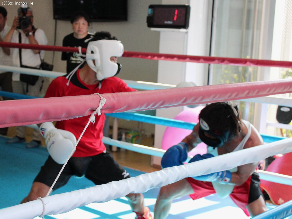 スパーリングではヘラルドと同じサウスポーの鈴木と3ラウンド行った。鈴木の連打に慌てることなくガードでブロックして被弾を許さず、フェイントから力強い右ストレートをヒットさせた。スパーリングの相手を務めた鈴木は「以前に比べてムキになって打ち合わなくなった。やはり接近戦が強くて上手い」と拓真の成長ぶりを再確認した。その後のミット打ちではディフェンスを意識しつつ、基本的なコンビネーションの確認をし、サンドバッグ打ちでは休みなく手を出し続けた。