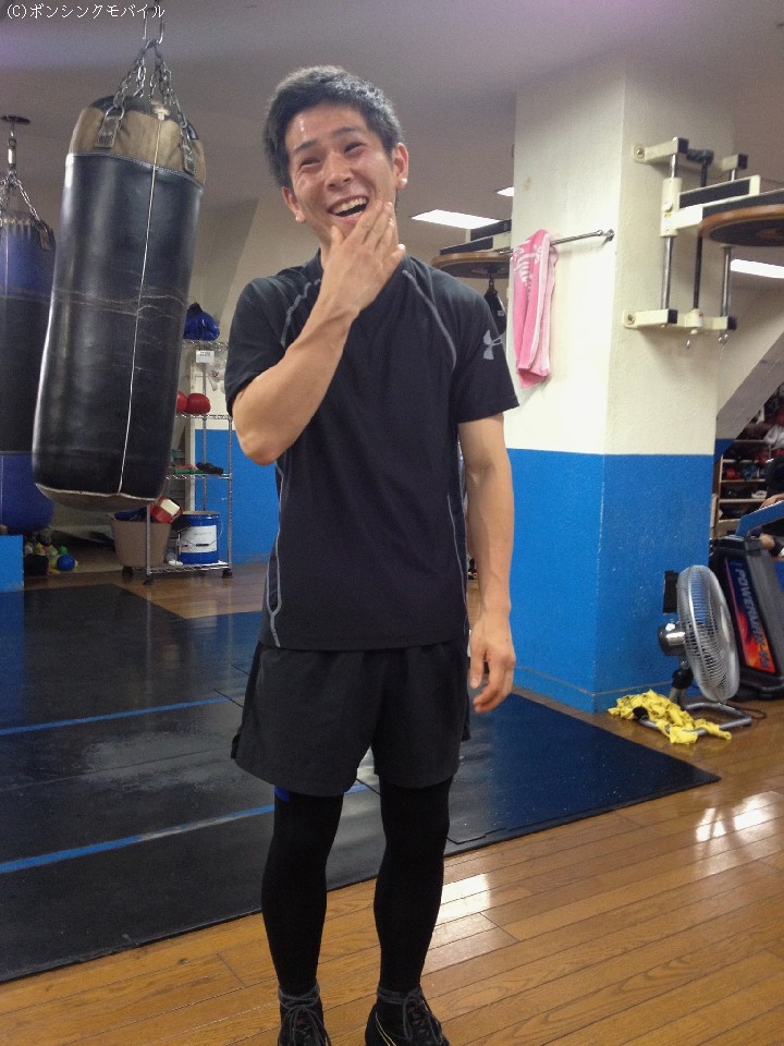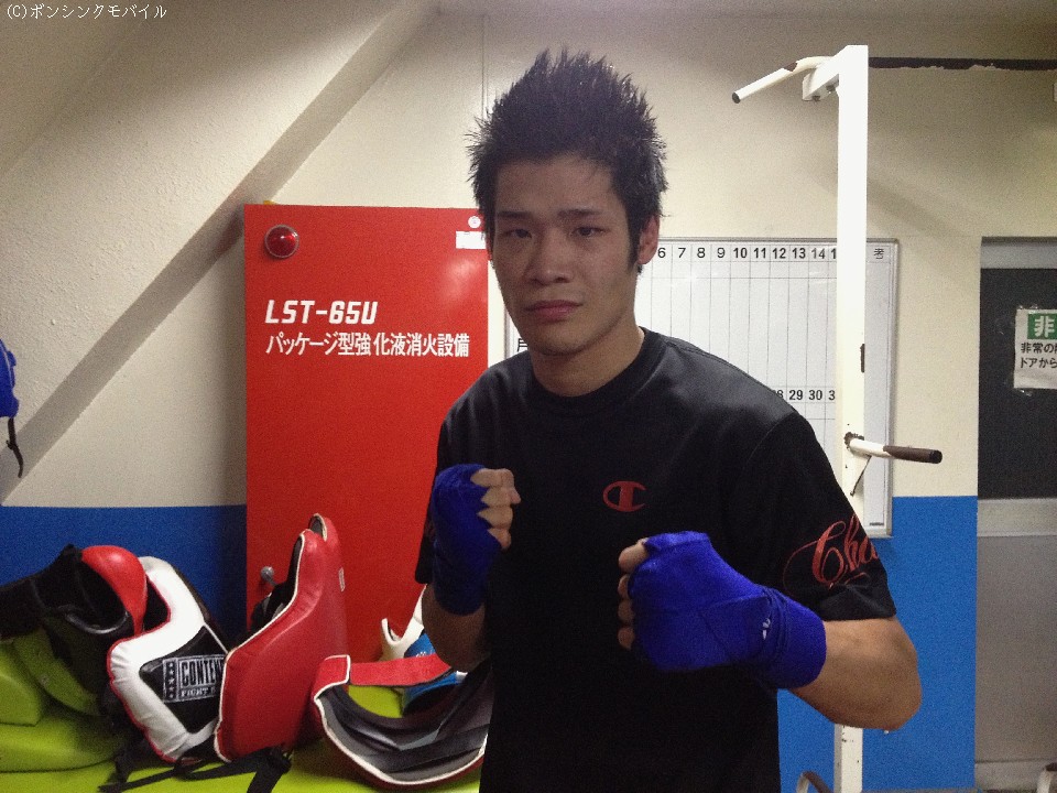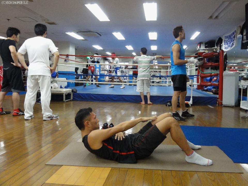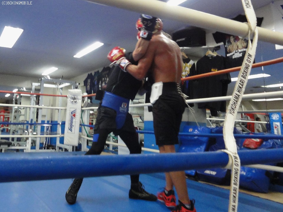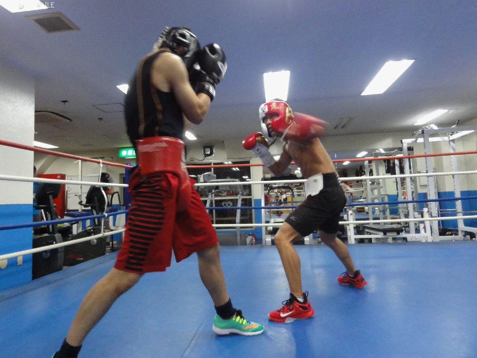 スパーリング前に話しを聞く機会を得たが、三月にフィリピンでWBOインターナショナルのタイトルを戴冠した時よりも全体的にふた回りほど大きく見えた。特徴的なのは腕周りだが、今の赤穂は安定感が増して見える。実際はリミットまで6キロと普段通りのペースだが、即席ではなく昨年9月から北原将夫トレーナーの指導のもとで取り組んできたフィジカル強化(※詳しくはピックアップインタビューをご参照下さい)がここにきて功を成してきた様子。サプリメントやプロテインなども効率的に取り入れているという。