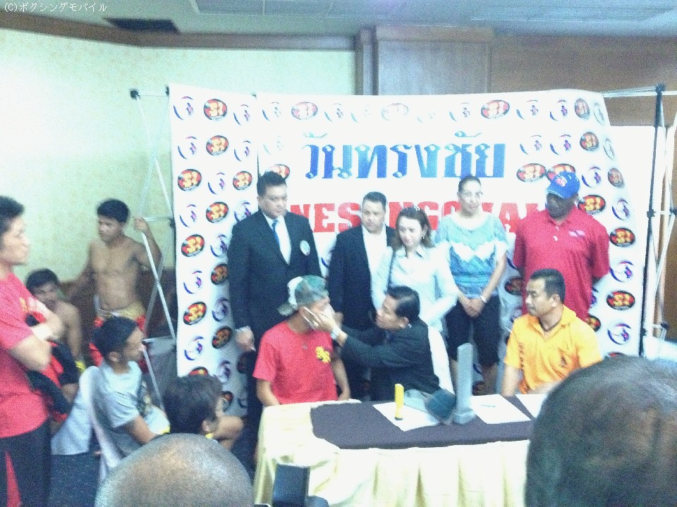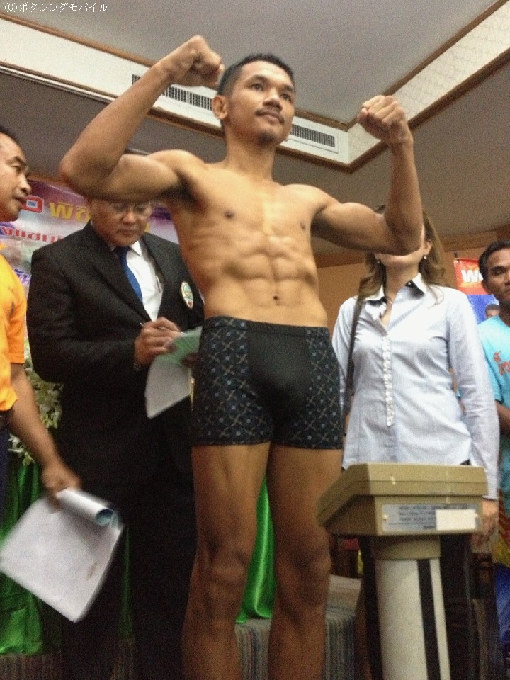 無事に一回で計量をクリアした赤穂とプンルアン。赤穂対策にフランス人選手を招聘した事実を聞かされると「赤穂対策するならドネアぐらいしかいないでしょう」と笑い飛ばした。敵地での決戦を翌日に控え「前回の世界戦の時とは違って落ち着いている」と充実ぶりをアピールした。