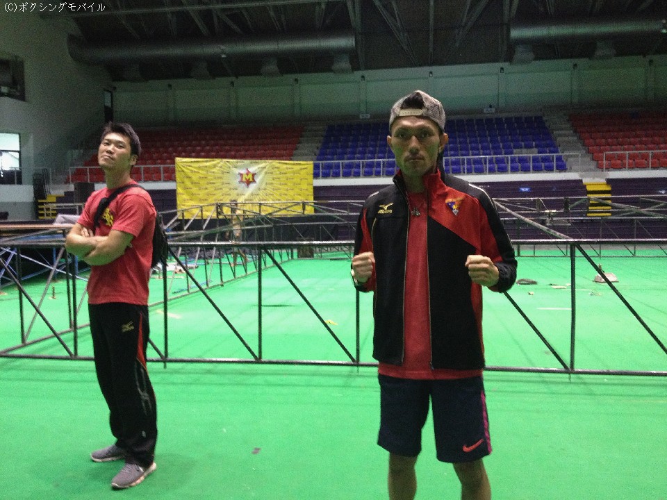 現地時間の6日午後3時(日本時間の午後5時)から始まった前日計量は、試合会場と同じタイの首都バンコクから車で2時間ほどの離れたラチャブリーという町で行われた。地元出身のプンルアンとは対照的に、赤穂陣営はバンコクから当日入りした。「今日泊まるホテルもバンコクになっていたので、こっちに部屋を取り直した」とプロモーターが用意したホテルとは別の宿で決戦を待つ。「石井会長や北原トレーナーをはじめ、チームにガードされてきたのでストレスなく準備できた」と感謝の弁が口をついた。