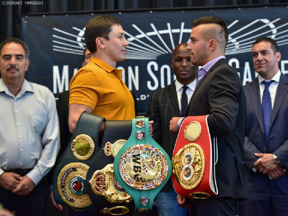 今回の試合はHBOテレビのペイ・パー・ビュー(有料テレビ)で一件49.95ドル(約6200円)で放送される。両者揃ってのツアーはその宣伝を兼ねたものでもある。この試合にWBA王座の15連続KO防衛がかかるゴロフキンは「これは誰にとっても驚異の歴史になると思う。すごい試合を約束する」と意気込んだ。