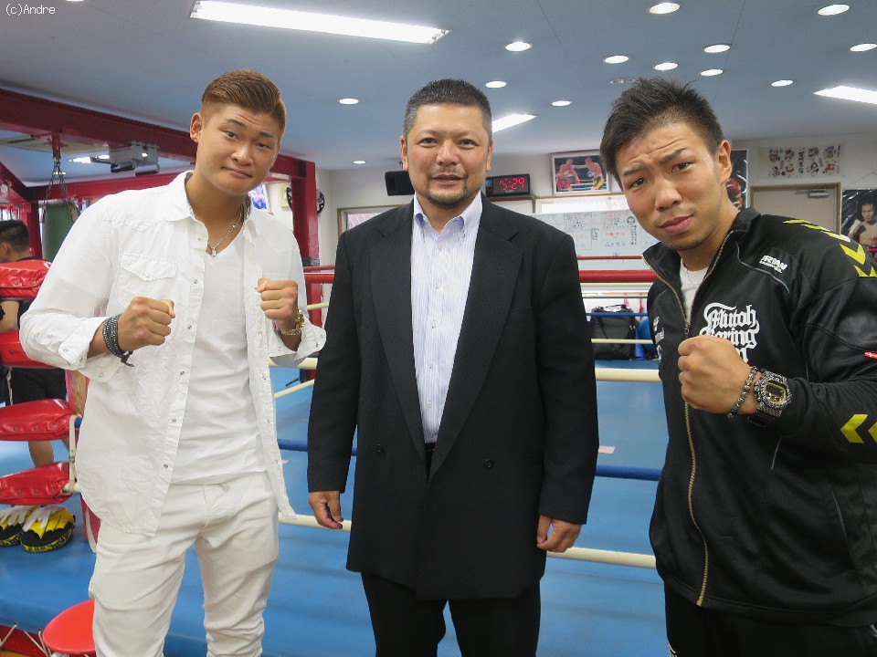 六島ジムで15日、元日本スーパーウェルター級王者で現在IBF世界同級5位の細川貴之(30)と東洋太平洋ミドル級1位の前原太尊・康輝(22)が揃って次戦の発表会見行った。