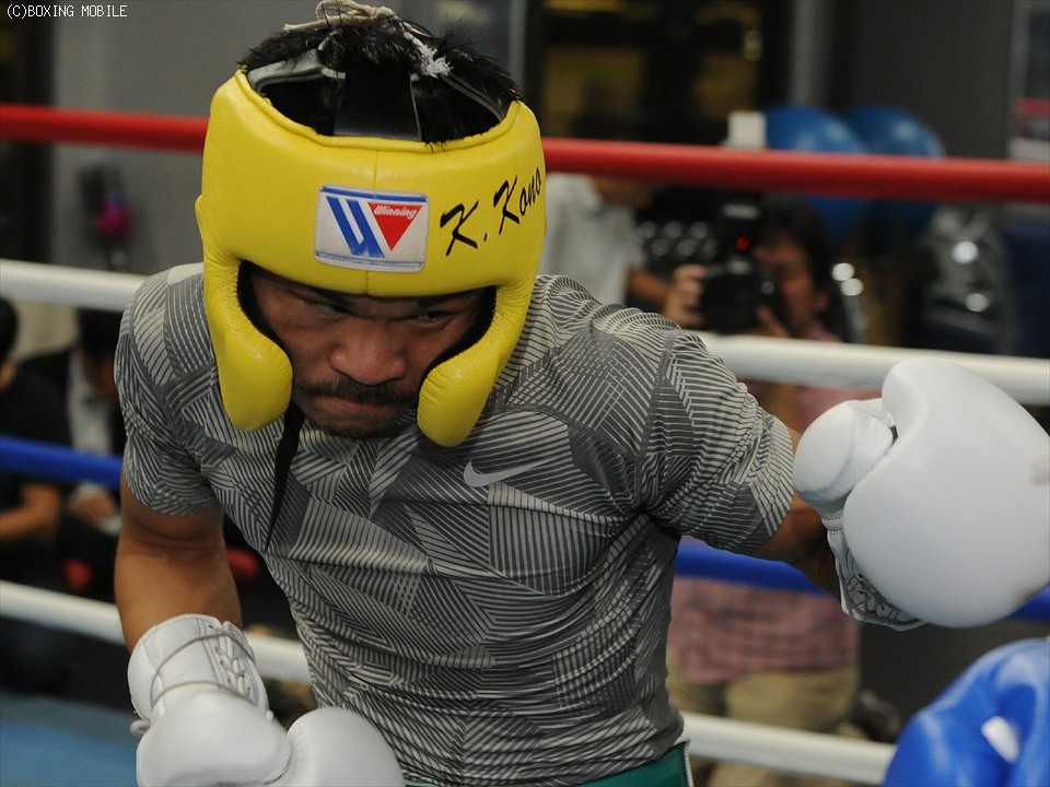 練習は左に構えた高橋トレーナーとのマスボクシングを含め軽めに終始したが、相手の体を左で起こしては右を打ち込などしっかりとパンチを確認していた。河野は10日に日本を発ち、現地で最終調整を行う。