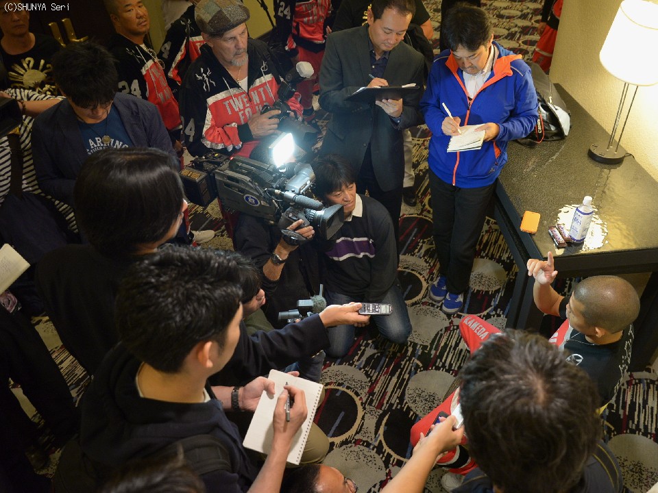河野は「スニッカーズだ」と無邪気に最初は受け取ったが、そのあとに子連れの見物客に向けて放り投げた。「減量は今までで一番ラクだったし、挑発にも慣れている。思い出をつくりに来たんじゃなくて倒しに来た。これに勝ったらまた海外で戦いたい」と語り、結婚をしたばかりの奥さんと合流していた。