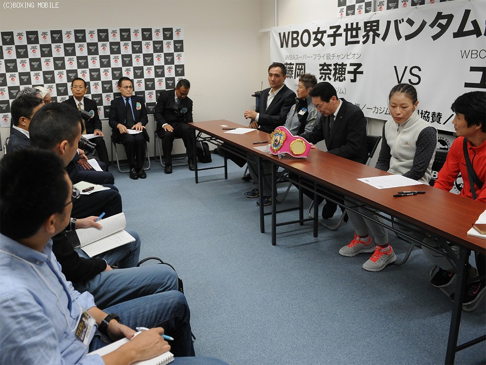 WBCミニフライ級、WBA・Sフライ級に続き、バンタム級で日本女子初の3階級制覇を目指す藤岡だが、女子の現状を憂い日本女子エースとしての責任も感じている。先日は自ら先頭に立って女子会を開き、これから女子をどう盛り上げていくかを議論したほどだ。明日の試合を皮切りに、今月と来月だけで5つの女子世界戦が予定されており、藤岡はそのためにも「結果だけではなく、強く印象に残る試合をしてこのあとの世界戦に弾みをつけたい」と話し、自らについても「3階級制覇をはたし、(まだ獲っていないLフライ級、フライ級での)4階級、5階級制覇に向け勢いをつけたい」と意気込んだ。