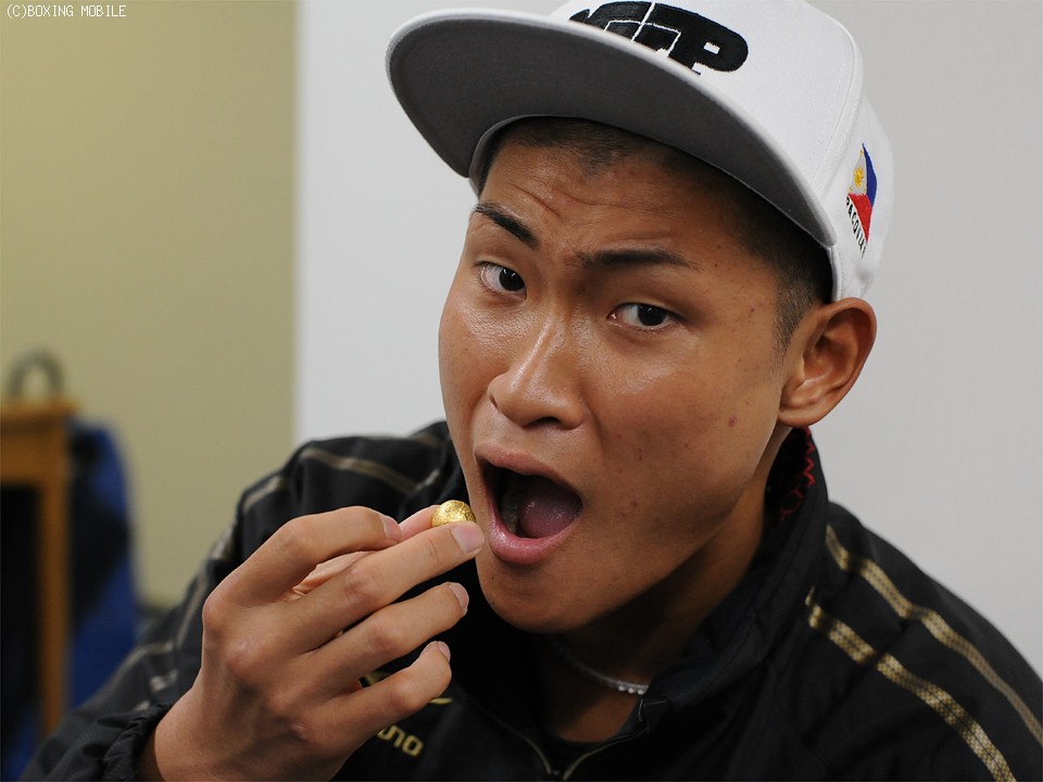 計量が終わりホッと一息ついた前原は、水分とバナナで栄養補給。「体調は良い。やることはやってきたので、後は結果を出すだけ」と意気込み、「まずはタイトル、形のあるものを手にしたい。地元に帰ってみんなにベルトを見せたい」と王座一発獲りを誓った。
