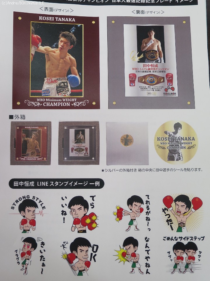 会見ではCBCテレビから、国内最速世界王座を獲得した記念で「日本人最速記録記念プレート」と「LINEスタンプ」が発売されることが発表された。記念プレートは限定500個で価格は21,600円。予約期間は本日11月10日から翌年1月5日まで、インターネット通販サイト、CBC ishopにて販売。「LINEスタンプ」はスマートフォンアプリ「LINE」内のスタンプショップにて販売。現在LINEクリエーターズマーケットに申請中、近日発売予定。