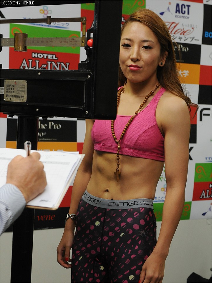 これが世界初挑戦になる神田は緊張の面持ちで計量に臨み、400gアンダーの47.2kgでパスした。「今回は1階級上げたので減量は楽だった。今回は食べながら落とすことが出来たので、これからお肉を食べに行きます」と笑顔を見せた。チャンピオン池原が気さくに話しかけてきて大阪出身の神田は同じ雰囲気を感じたというが「大阪・リーチと同じことが多いが、試合内容では違いを出していきます」とハッキリとした形でのベルトを奪いにいく姿勢を見せた。