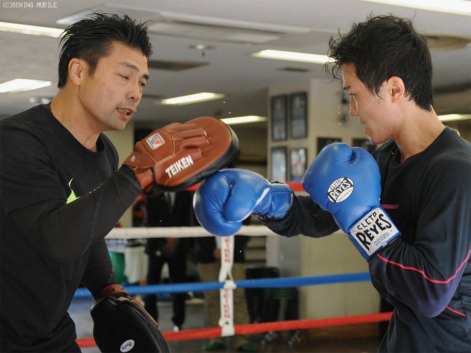 練習に移り念入りに体をほぐした木村は、後輩の堤アキラ(23/3勝2KO1分)と2ラウンドのスパーを披露。スピーディーな出入りでジャブを突き、力強い右ストレートから返しの左フックを打ち込むなど、自身が目指す「打たせずに打つボクシング」を実践していた。これまで30ラウンドほど木村のパートナーを務めた堤は、「とにかく出入りが速く、ジャブで捌かれっぱなしです。ゲバラはボディ打ちの上手い選手ですが、木村さんのスピードで捌けると思う。場合によっては後半に倒すんじゃないですか」と期待を膨らませた。