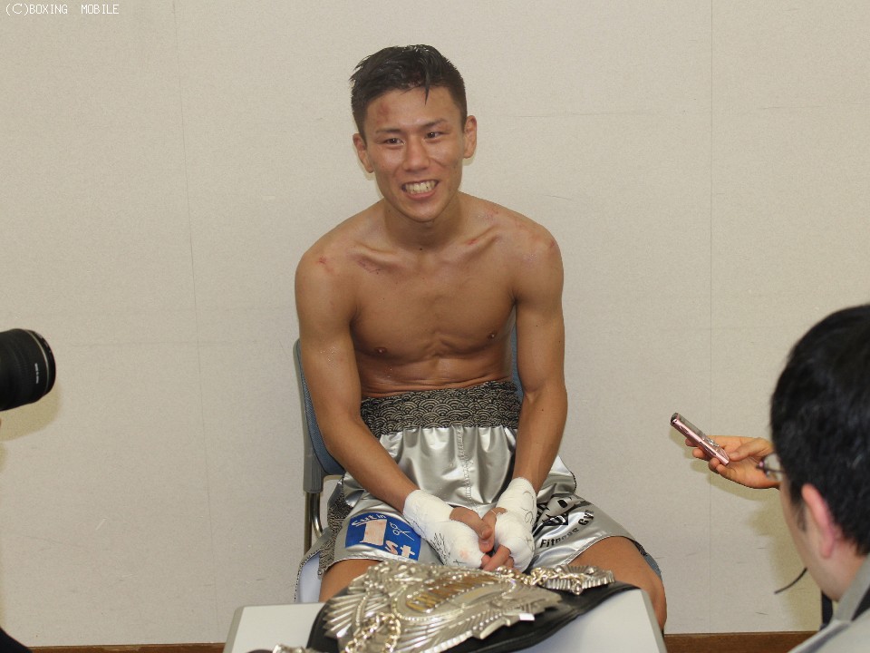 」。「もっと打っては離れてのボクシングをしたかったが、今日は反省が多いです。このままでは栄選手には勝てない。もっと練習します」と早くも前を見据えていた。「せっかく取ったベルトですから簡単には渡したくないですから」と新チャンピオンのプライドをのぞかせた。