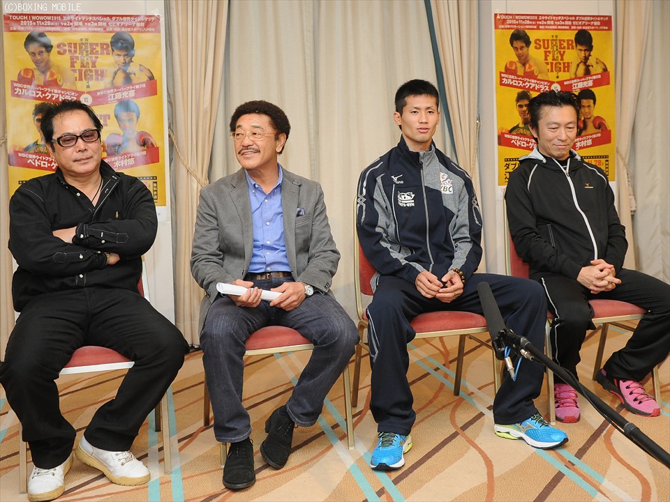 一方、元WBA世界フライ級暫定王者で事実上の2階級制覇を目指す江藤は、階級を上げたことで苦しめられた減量から少なからず開放され、「過去最高の仕上がり」をアピール。クアドラスについては「映像で見たよりも線が細い」としたが、「ほぼ想像通り。低すぎてもいやだし、この位がちょうど良い」と自信を深めた。江藤はこのまま仙台に向かい、明日の調印式と計量に臨む。