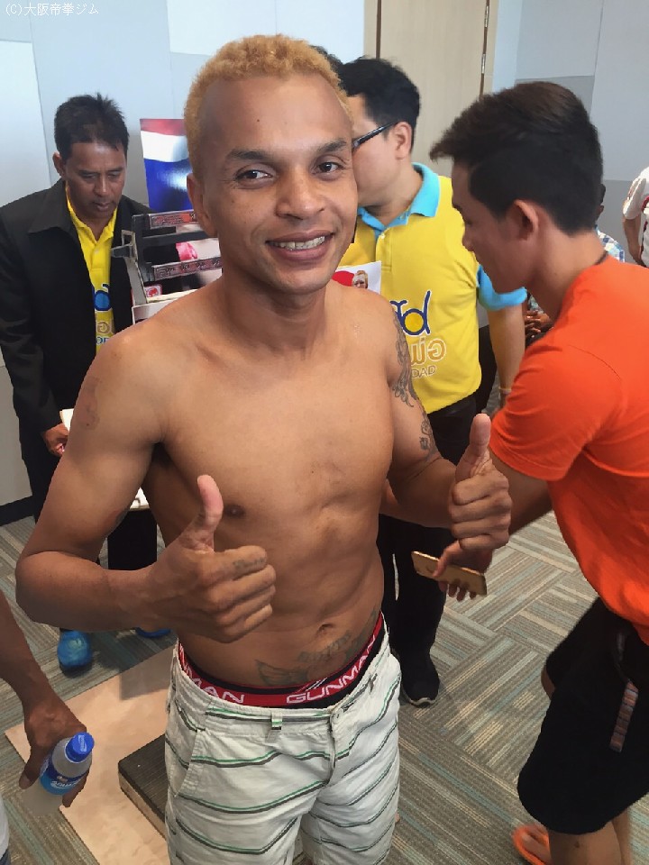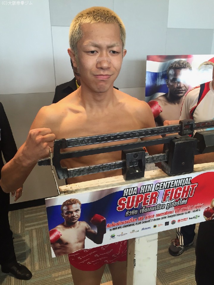 明日7日、IBF世界フライ級王者アムナット・ルエンロエン(35=タイ)に挑む同級10位の李明浩(33=大阪帝拳)が、決戦の地タイ国フアヒンの会場で前日計量に臨んだ。