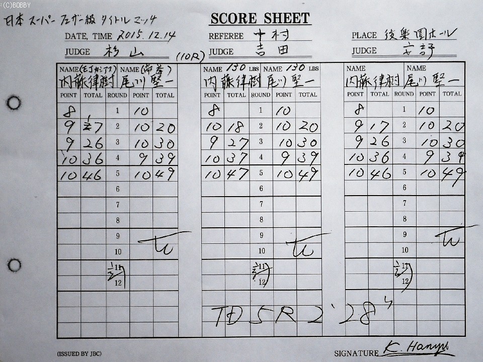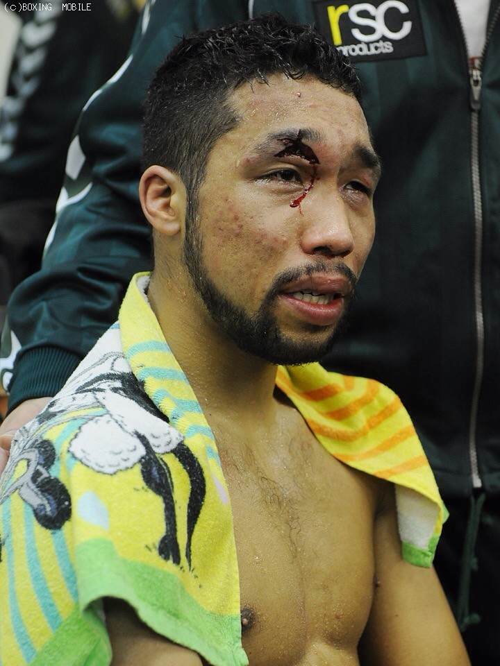 一方、ベルトを失うとともにこれが初黒星となった内藤はショックを隠し切れない様子で「すごく良い練習をしてきていただけに悔しい。すみませんでした」と右の眉上を大きくカットした痛々しい姿をみせ、顔を両手で被った。「4ラウンドまでに回復して次からいくつもりだった。その矢先でのバッティングなだけに…」と唇を噛んだが「初回にダウンした自分が悪いので仕方ない」と判定には納得の様子だった。「傷を治してもう一度尾川選手とやりたい」とリベンジを誓った。