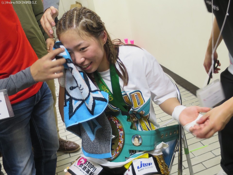 YuKOジムの古賀友子会長は「今までの世界戦の中では今日が1番良かったと思いますね。誘ってカウンターを打つ練習もしていましたし、よく出てました。今日のところは合格です。来年またレベルを上げて統一戦とかもできたら良いと思っています」と喜びを語った。