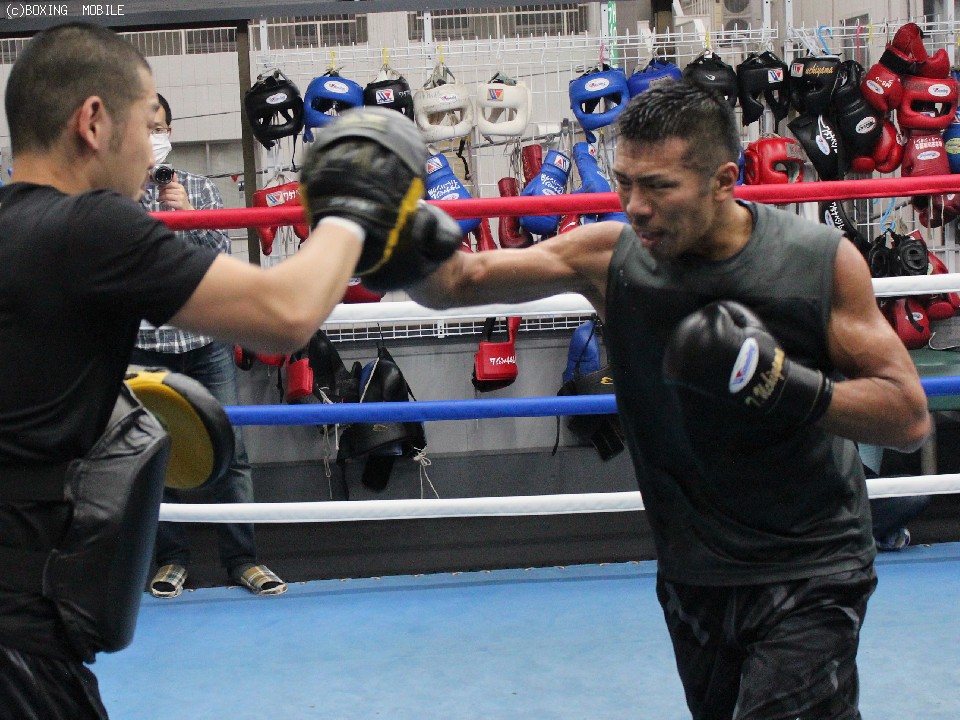続くミット打ちでは、右ストレート、左ボディを確認するように打ち込むと最後には高速コンビネーションも披露。練習を見守った渡辺均会長も「約5年ぶりとなる万全の状態。内山の強さがわかる試合が観られると思う」と絶対王者の仕上がりに目を細めた。