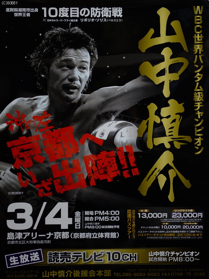 約6500人収容の会場にも関わらず、山中の後援会だけでも3000枚のチケットが売れた。追加分の申し込みは断っている状況と嬉しい悲鳴だ。滋賀県出身で南京都高校を卒業した山中は同級3位リボリオ・ソリス(ベネズエラ)を迎えて10度目の防衛戦を、木村は6位ガニガン・ロペス(メキシコ)との初防衛戦に臨む。満員にした会場はまさにホームタウン。大きな声援が二人の力になることは間違いない。